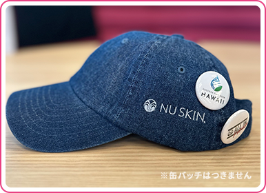 ※缶バッチはつきませんデニム&ブルーのロゴがクール!